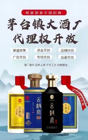 茅台镇古名“马桑湾”又名“四方井”,明代时期,在赤水河两岸修建了九座大庙,并在其中的观音寺禹王宫内珍藏了三面东汉铜鼓(已出土一面鼓),故而又叫三鼓寺,茅台镇因此又名“云鼓镇”。“云鼓泉酒”正是产自酒都茅台镇的一种具有深厚历史文化的美酒,酒质晶亮、透明、微有黄色,口味优雅细腻,酒体丰满醇厚、回味悠长,是赤水河恩赐的天然的“玉液琼浆”。
