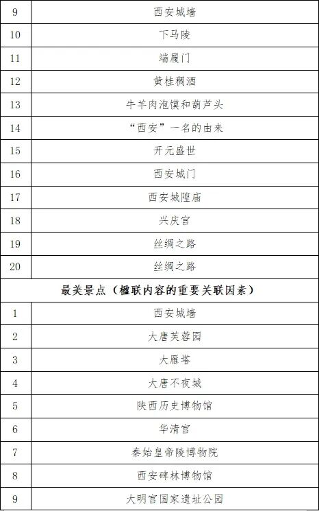 二、内容“三副对联说陕西”拟以地理地标、历史地标、人物地标为线索,寻找最能展现中国、陕西形象的综合联、主联、副联各3副,陕西及陕西各地旅游景点综合对联3副,关联陕西著名风景名胜、人文风貌、经典故事,表现富有内蕴的地域特色和民族精神。内容包括但不限于:1.以中国为主题,包括华夏(中华民族)、黄河、长江、长城、一带一路、昆仑山、秦岭、泰山、首都等固定主题,参赛者亦可自选关涉中国形象、中国历史、中国文化、中国梦想的其他主题。2.以陕西为主题,包括陕西综合形象、黄帝陵、仓颉庙、华山、渭河、汉江、长安、延安、宅兹中国、郑国渠等固定主题,参赛者亦可自选关涉陕西形象、陕西历史、陕西文化等其他主题。3.以陕西省各地市为主题,包括西安、咸阳、宝鸡、渭南、铜川、延安、榆林、商洛、汉中、安康等各地市形象主题。4、各地市主题词,西安:古都、兵马俑、钟楼、大雁塔、长安八景,终南山、城墙、国家考古遗址公园、小雁塔、陕西历史博物馆等。宝鸡:炎帝祠、周公庙、法门寺、张载、青铜器、石鼓文、太白山、五丈原、周原等。咸阳:古都、古渡、古塬、郑国渠、周秦汉唐皇陵等。铜川:孙思邈、照金、铜炉古镇、玉华宫、孟姜女、耀州窑等。渭南:仓颉庙、华山、黄河、潼关、司马迁、将相故里、伊尹、洽川湿地等。延安:宝塔山、清凉山、黄河、黄土地、黄帝陵等。榆林:石峁遗址、六楼骑街、乌金、能源、统万城、杨家将等。汉中:张骞、诸葛亮、汉源、汉江、汉台、中华聚宝盆、秦岭、巴山、青木川等。安康:香溪洞、瀛湖、云雾山、鸡心岭,太极城,汉江明珠、安澜楼,秦岭、巴山、“三沈”、硒谷等。商洛:商於古道、商鞅、商山四皓、武关、古镇、秦头楚尾等。杨凌:后稷教稼、农业硅谷、隋文帝泰陵、马援祠、渭河湿地运动公园等。各地市旅游联主题词:十大景点、标志性景区、旅游路线等。