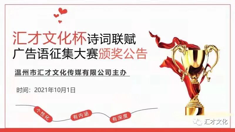 [赛事揭晓] “汇才文化杯”诗词联赋广告语征集大赛颁奖公告