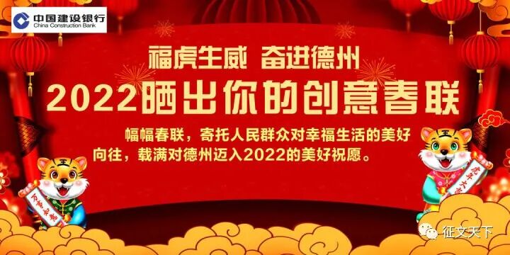 “福虎生威 奋进德州”2022原创春联征集大赛奖单出炉[url=]公众号征文天下[/url] [color=rgba(0, 0, 0, 0.3)]2022-01-25 08:55