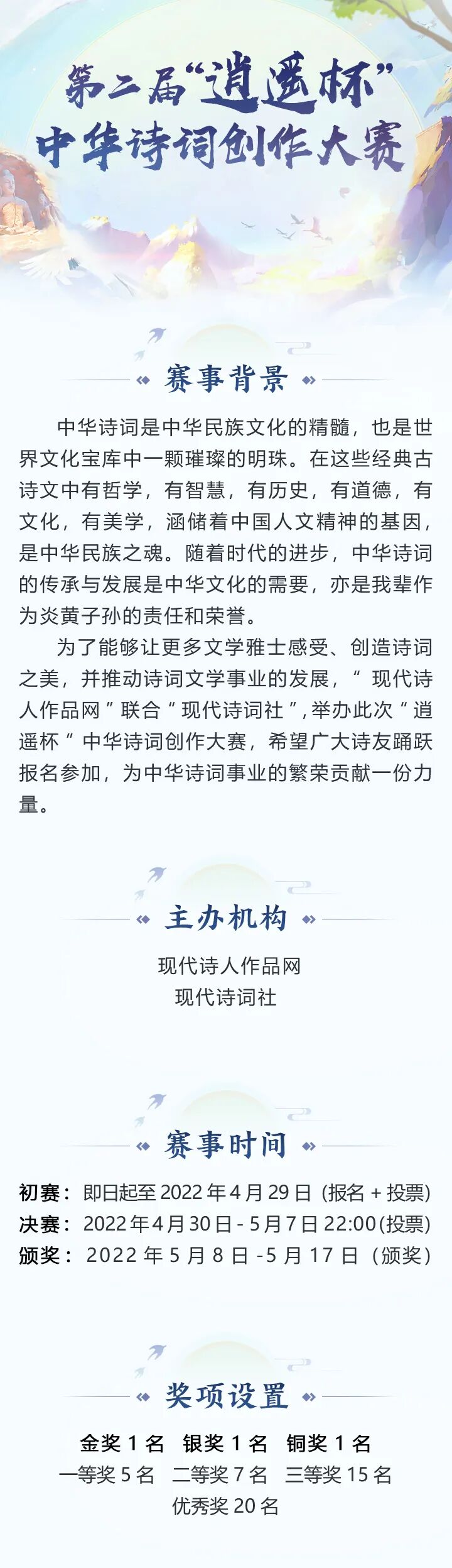 [诗词征稿] 【22.04.29】第二届“逍遥杯”诗词创作大赛火热征稿中!