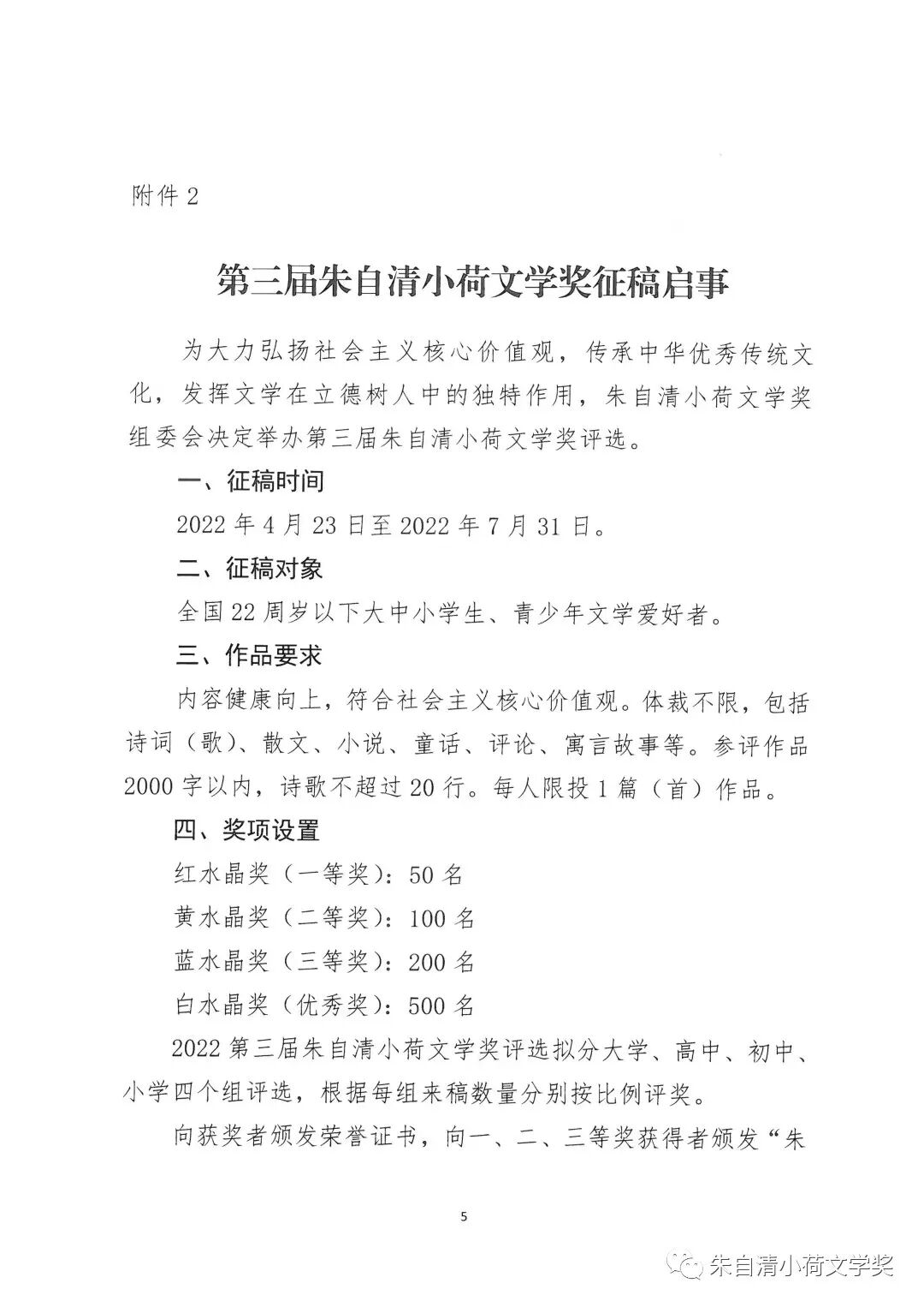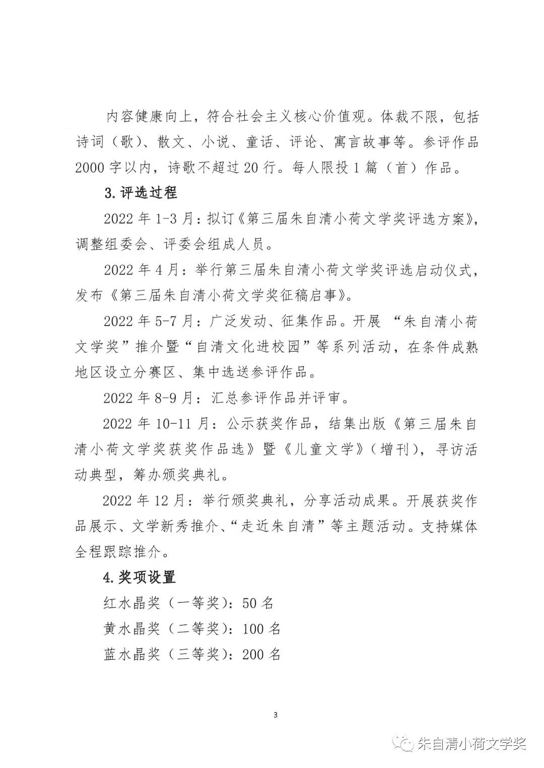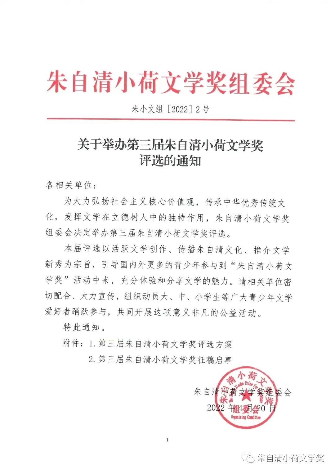 附:关于举办第三届朱自清小荷文学奖评选的通知