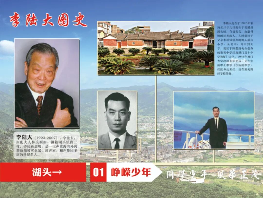 福建安溪 陈水宝    纪念李陆大先生百年诞辰弄潮商海荡轻舟,终作人间第一流。兴学嘉庚宜并置,疏财少伯或堪俦。小行星上功名表,千叟宴中孝德留。虽逝此身魂永在,化为栋栋爱心楼。