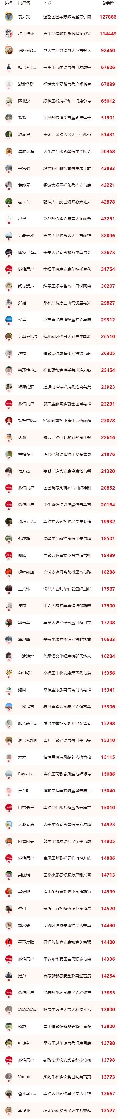 颂福人气奖(66名)